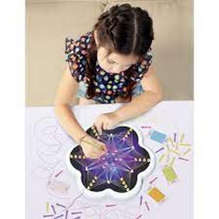 E’ facile divertente creare bellissimi mandala con i fili colorati e i chiodini Quercetti. Basta appoggiare la scheda illustrata sulla tavoletta forata, inserire i chiodini nella giusta posizione e tendere i fili colorati tra un chiodino e l’altro con l’aiuto della cannuccia. Sarà facile come disegnare con un pennarello, i fili formeranno un fitto intreccio che rivelerà fantastici disegni colorati. Età: 5+ anni