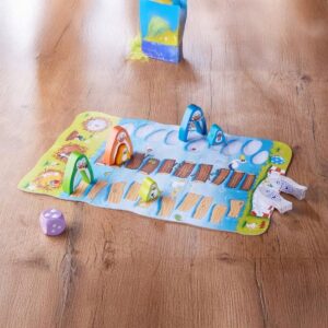 Il percorso è un sentiero fatto di tronchi d'albero e pietre, e sarà il lancio del dado a determinare di quante caselle i pinguini potranno avanzare. "Su, su, piccolo pinguino" è un gioco di corsa simpatico e cooperativo che insegna ai bambini a giocare insieme, a seguire le regole e a vivere le prime esperienze di gioco di gruppo. Un grande divertimento garantito, con partite veloci che durano dai 5 ai 10 minuti.