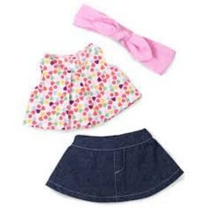 Outfit estivo composto da gonna, top e fascetta per capelli. Per Rubens Cutie dimensione 32 cm.