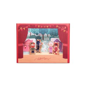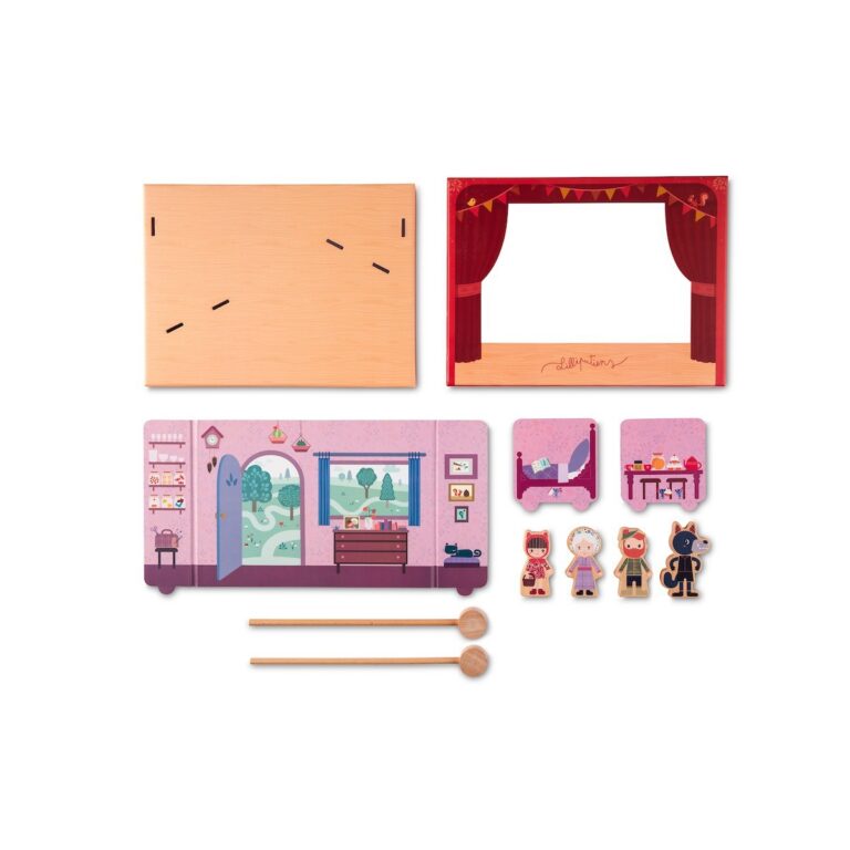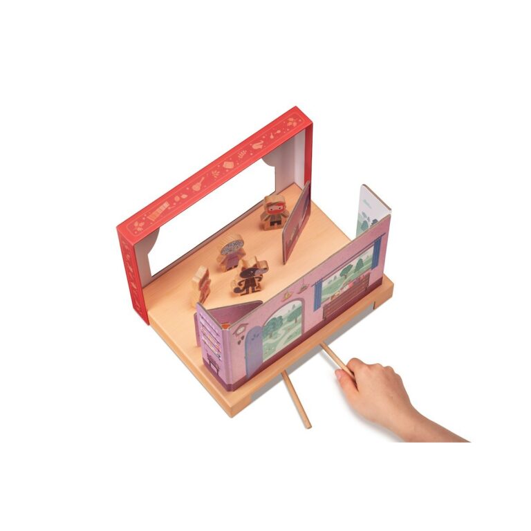 Teatrino in legno con personaggi magnetici - Cappuccetto Rosso. Questo affascinante teatro ti permette di raccontare la favola di Cappuccetto Rosso. I personaggi in legno si muovono sul palco, tra le decorazioni splendidamente illustrate, grazie a 2 bastoncini di legno dotati di calamita. La scatola si trasforma in un teatro in un batter d'occhio. Lo scenario è stampato su entrambi i lati, consentendo di creare scene diverse. 4 personaggi in legno prendono vita sul palco grazie ai bastoncini magnetici: Cappuccetto Rosso, la nonna, il lupo e il cacciatore. Dimensione: 32x24 cm - Età: 3+