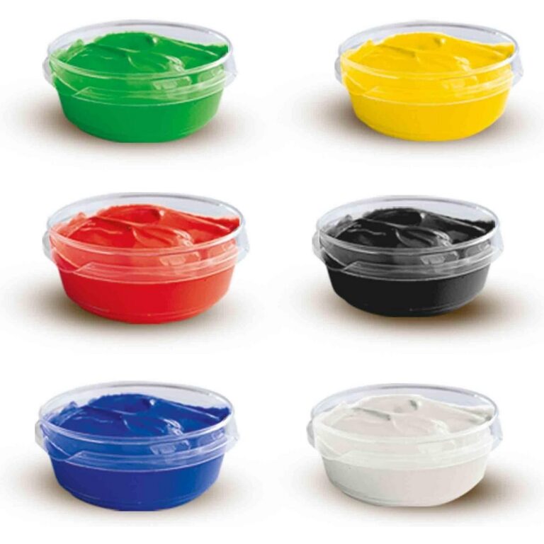 Il set è composto dai sei colori: rosso, blu, bianco, nero, verde e giallo. Mescolando i colori, le possibilità sono infinite e si possono creare molti più colori!