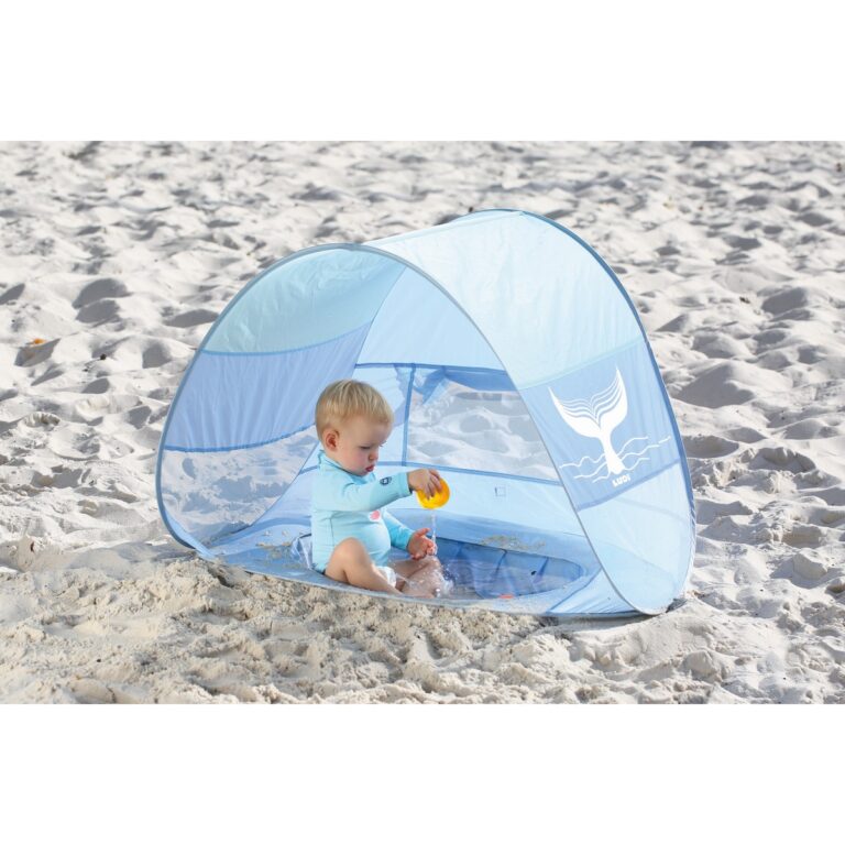 Adatta fin dalla nascita, la tenda con piscina pop-up è un vero plus per le famiglie in riva al mare. Ripara dal sole ma allo stesso tempo è una piscinetta a misura di bambino, così i più; piccoli potranno godersi l'acqua di mare sotto gli occhi dei genitori e proprio accanto al loro asciugamano. Facile da maneggiare, la piscina si apre in un batter d'occhio. Basta un buco nella sabbia! Aggiungete un po' di acqua di mare o di semplice acqua e il gioco è fatto! La tenda permette ai bambini di giocare al riparo dai raggi nocivi del sole grazie al suo tessuto in poliestere anti UV 50.