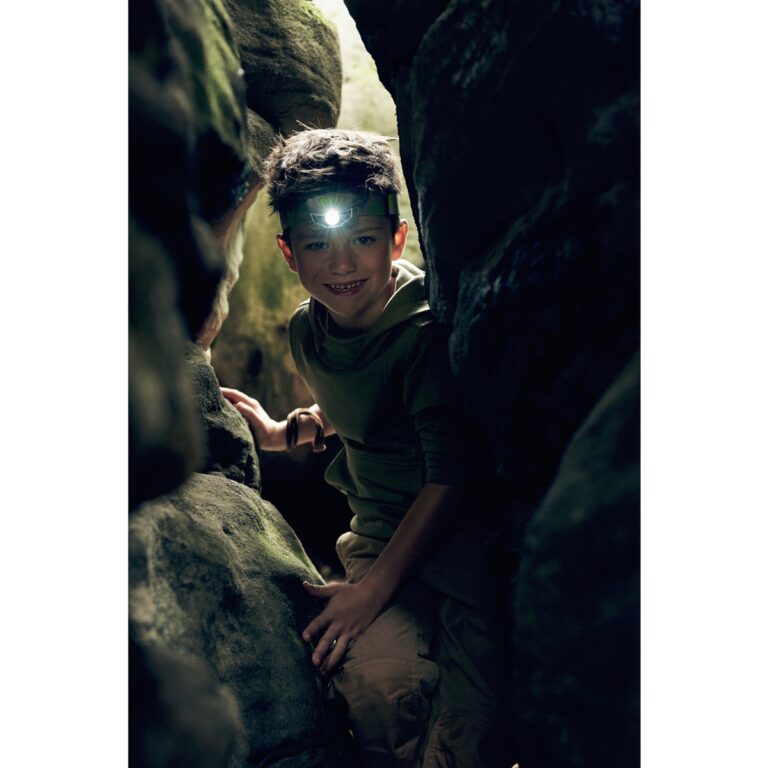Lampada frontale multifunzione Terra Kids per far luce al crepuscolo e al buio. Con LED di due colori, due livelli di luminosità e indicatore luminoso lampeggiante. Fascia elastica regolabile e comoda da indossare. Batterie non incluse ( 3 x 1,5-V-AAA). Luminosità: 110 lumen. Età consigliata: 5+