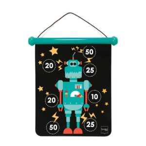 Questo meraviglioso gioco di freccette magnetico è unico nel suo concetto e design. La tela magnetica può essere appesa in 2 modi diversi. I dardi sono fatti di plastica con una punta di metallo e non sono affilati alle estremità, quindi il gioco è completamente sicuro per i bambini. 6 freccette incluse. Dimensione tela : 40 x 31 cm. Età consigliata : 5+