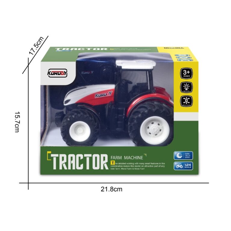 • Design Realistico: I trattori Korody presentano dettagli accurati che replicano i trattori agricoli reali, inclusi elementi come fari funzionanti, suoni realistici, robuste ruote in gomma e accessori agricoli.