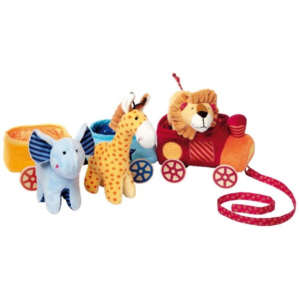 Traina gli animali sul morbido trenino! Animali e vagoni realizzati in soffice cotone; le ruote si possono facilmente staccare per permetterne il lavaggio. (3m+)