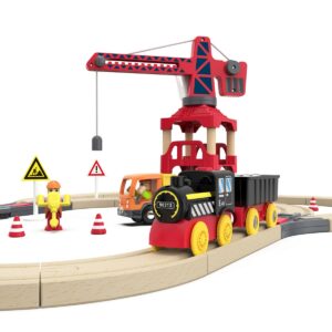Trenino in Legno – Cantiere con Gru – 58 Pezzi