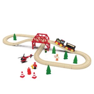 Questo set è perfetto per chi ama la natura e l'azione, aiutando i bambini a sviluppare la coordinazione e la fantasia. È progettato per durare a lungo grazie alla combinazione di legno e ABS resistente, ed è completamente compatibile con gli altri binari già presenti in cameretta.