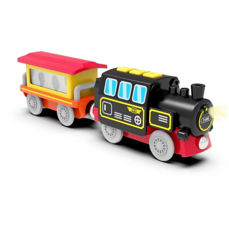 ll Treno a Vapore Elettrico Taylor con Luci e Suoni di Mykafort offre un’esperienza di gioco immersiva per i bambini amanti dei trenini. Il set include la locomotiva a vapore e una carrozza collegata magneticamente, entrambe realizzate in ABS resistente e sicuro. Tutti i veicoli possono muoversi sulle rotaie ed è compatibile con la maggior parte delle altre marche di trenini in legno, consentendo di integrare facilmente il set con altri giochi.