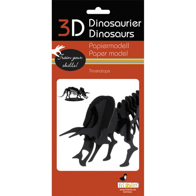 Modello di carta 3D – Triceratopo. Dimensioni (l/a/p): ca. 20,5 x 7,5 x 4 cm (montato)