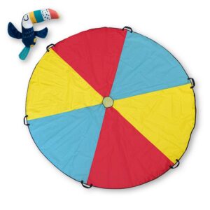 Hey, guarda come vola in alto il tucano! Gioca con i tuoi amici e usa questo coloratissimo paracadute per far volare il tucano più in alto possibile. Assicurati che il tucano non cada a terra! Con questo fantastico paracadute, il divertimento è assicurato. Grazie al suo diametro di oltre 2,5 metri, puoi inventare innumerevoli modi di giocare. Da due a sei giocatori.