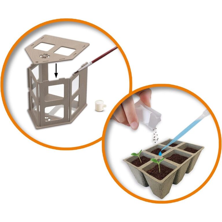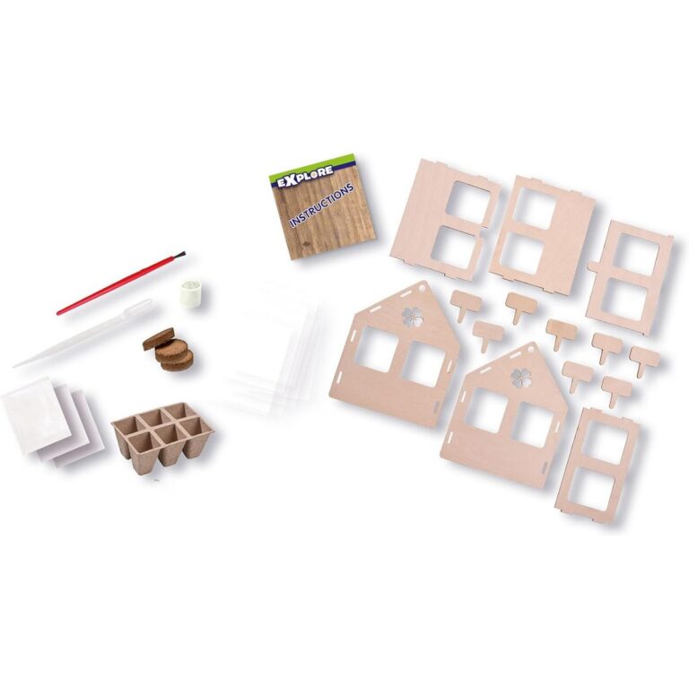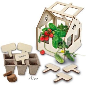 Con questo set potrete costruire la vostra serra in modo semplice e veloce. Prenditi cura delle tue verdure ed erbe perché quando hanno finito di crescere, puoi mangiarle! Il set è composto da una serra in legno che può essere assemblata senza attrezzi. La serra dispone di tutte le attrezzature necessarie per la semina, come un contenitore, terra e semi.