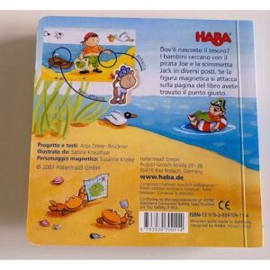 I bambini cercano con il pirata Joe e la scimmietta Jack in diversi posti. Se la figura magnetica si attacca sulla pagina del libro avete trovato il punto giusto.