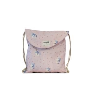 Lo zaino Runbott con coulisse è realizzato in tessuto (80% cotone, 20% poliestere) e nasce dalla collaborazione con De La Mur, con una simpatica stampa per bambini di Marta Munté. Leggero e pratico, è perfetto per trasportare piccoli oggetti, merende o borracce durante la scuola, i viaggi o le attività all’aperto.