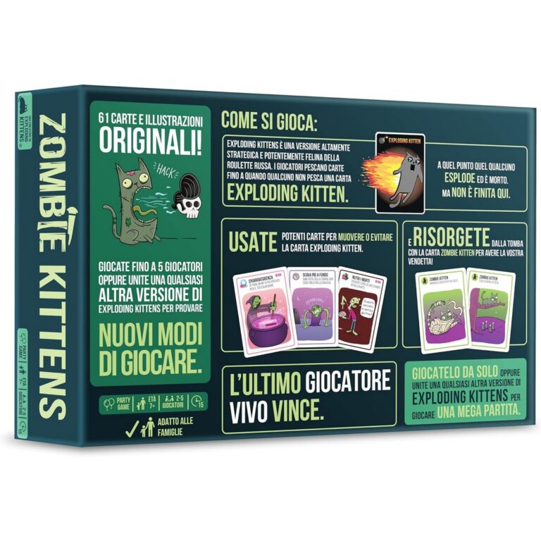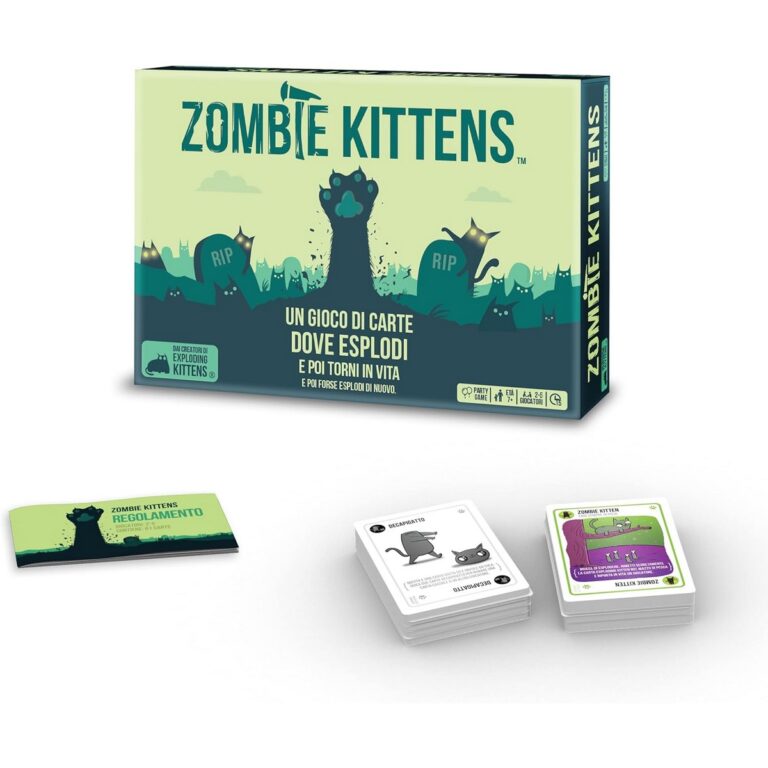 Usate potenti carte per muovere o evitare la carta Exploding Kittens e Risorgete dalla tomba con la carta Zombie Kitten per avere la vostra vendetta!